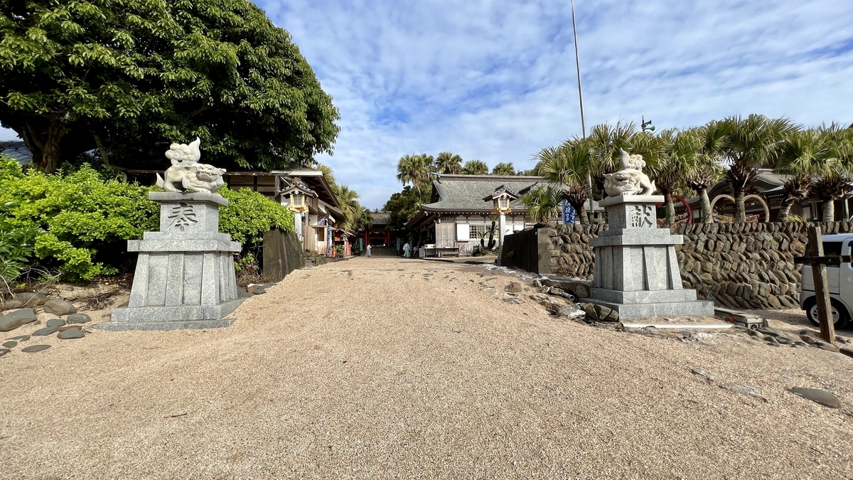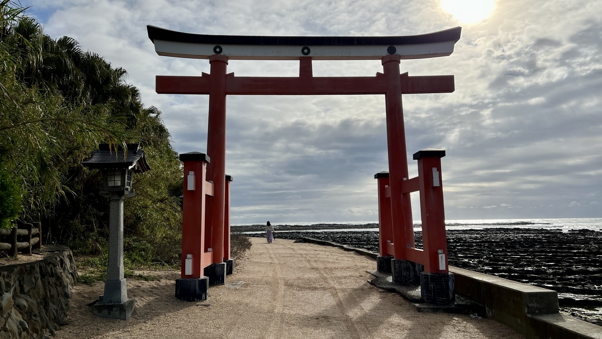 振り返れば目の前がすぐ海なので、写真の通り「砂浜から通じる神社」になっています。実際にここに立つと、すごく不思議な感じがしますよ。